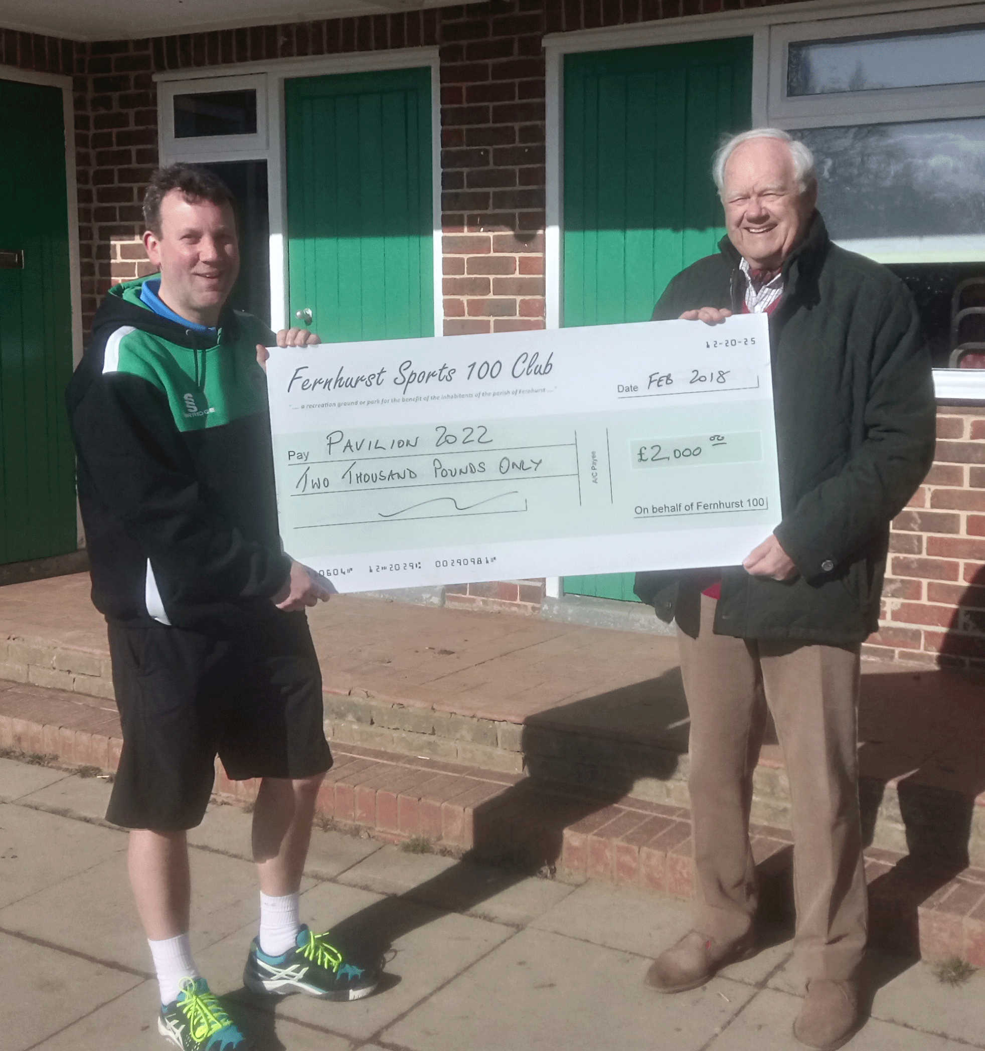 Earlier this month Fernhurst Sports 100 Club presented the Pavilion2022 project with £2,000. Since it’s inception in late 2016 the 100 Club has donated £3,500 to Pavilion2022 and a further £3,500 to over 30 winners of the monthly draw.